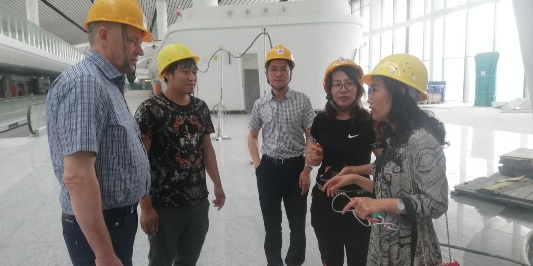 进入机场内部后,北京瑞拉克现场的项目工程师潘晓波和刘勇热情接待了两位外国友人,在引导伊万先生和亚格宁先生参观机场内部的同时,对施工工艺也进行了深度交流。