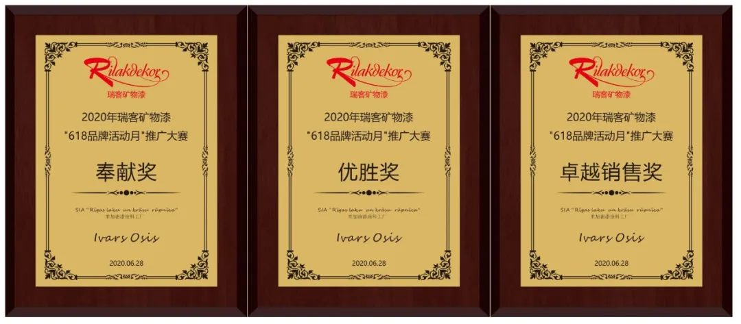 瑞客矿物漆中国总部与欧洲工厂联名打造了一款总裁伊万签名的纪念奖牌,授予在“618品牌活动月”中表现突出的周村,青岛和梁山代理商。