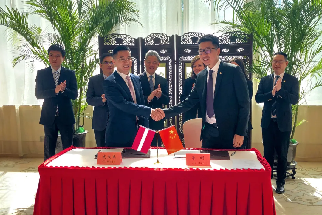 会见后,苏州市副市长杨知评、拉脱维亚驻华大使马尼卡、商务参赞艾思洁与苏州市有关领导共同见证了里加油漆涂料工厂亚太区总裁史文杰和苏州金螳螂(企业)有限公司总裁朱明签署战略合作协议。金螳螂(企业)有限公司常年居于国内建筑装饰行业首位,根据双方签署的协议,将积极向客户推荐使用瑞客矿物漆。